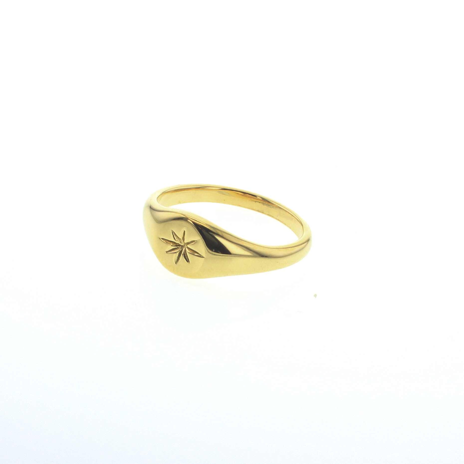 Features a sweet star design engraved in a signet-ring style design.